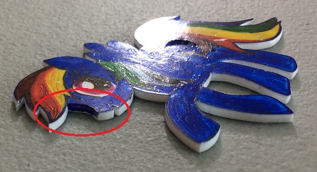 Unintentional spot of blue on edge of shrink plastic Rainbow Dash