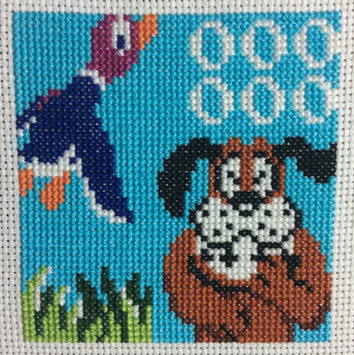 I sucked at Duck Hunt. I mean absolutely sucked. I saw a lot of the laughing dog. Stupid dog. The only way I could even attempt to play the game was to exploit the trick where you hold the gun with the tip only an inch or so from your TV screen to mess with the light sensor. But it makes for an adorable cross stitch square!