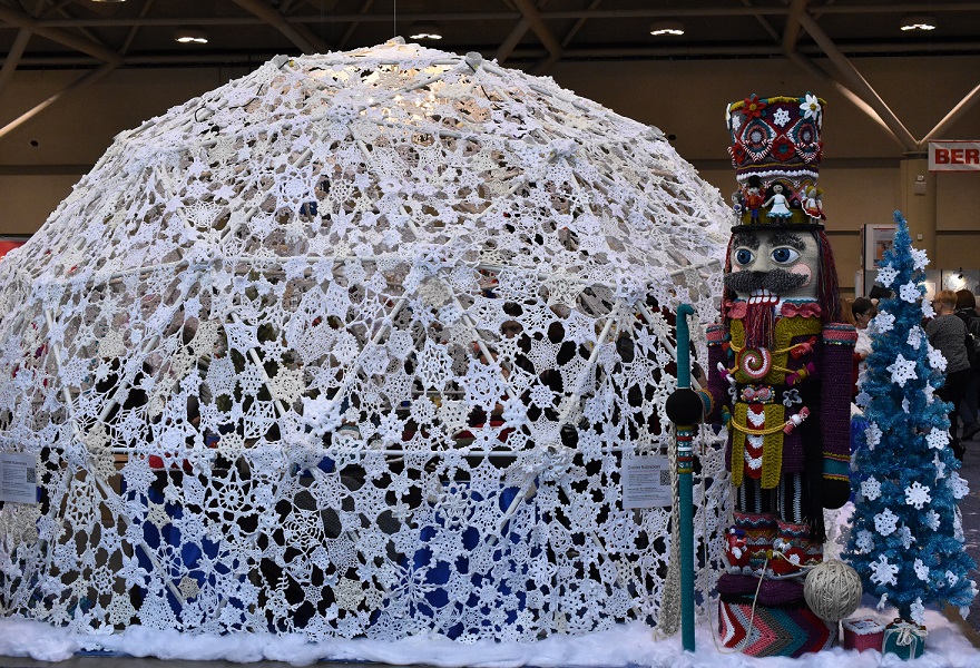 I learned how to extreme double-knit, and more importantly, how to create patterns for extreme double-knitting, from Alasdair Post-Quinn’s Adventures in Double-Knitting class on Craftsy. I absolutely loved this class and highly recommend it if you have any interest in learning the double-knitting technique.